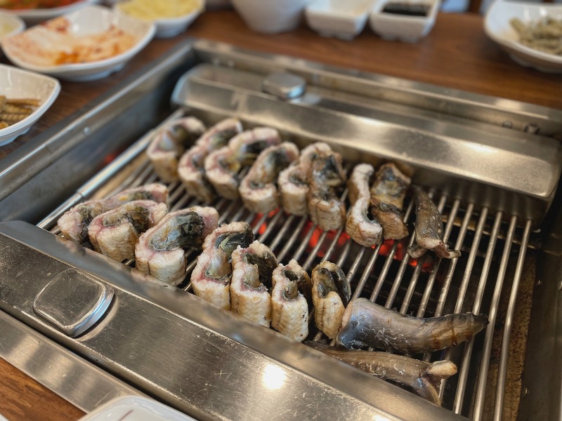 강화도 맛집 베스트10 중 여덜번째로 추천드리는 맛집은 강나루숯불장어 인데요. 위에서 언급했듯이 강화도는 갯벌장어가 특히 유명한데요. 이곳은 또다른 장어의 맛집입니다. 강나루숯불장어집은 직접 장어 양식장을 운영해서 판매를 하고 있습니다. 장어에 들어가는 소스는 직접 강화시장에서 가서 사온 약재로 만든다고 하는데요. 소스가 굉장히 맛이 좋습니다. 장어구이는 가스불이 아닌 숯불에 구워서 숯불의 향까지 더해져서 맛이 좋습니다. 기본찬으로 밴댕이회무침까지 나오는뎅, 새콤달콤하니 맛이 좋습니다.