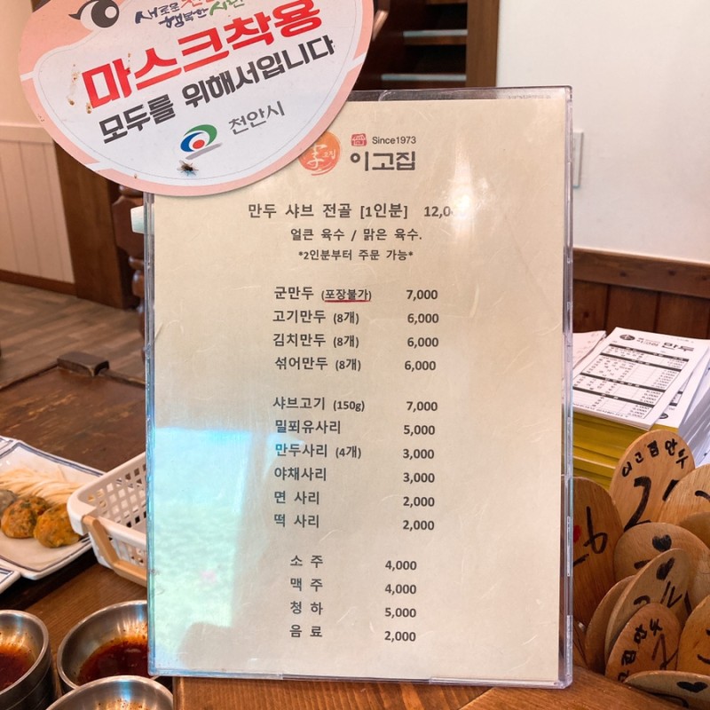 천안 맛집 베스트10 중 두번째로 추천드리는 맛집은 이고집 만두 입니다. 이고집 만두는 3대째 가업으로 이어오는 천안 맛집입니다. 만두피부터 속까지 모두 직접 만드는 수제만두로 워낙 유명하고 찾는 사람들이 많아 재료가 조기에 소진되는 경우가 있습니다. 왕만두 종류가 아닌 굴림만두를 맛볼 수 있으며 국물의 깔끔한 맛과 밀푀유 나베와 만두전골의 콜라보를 즐길 수 있는 곳입니다. 얼큰만두샤브전골,만두샤브전골(13.0), 군만두(8.0), 고기만두,김치만두(6.0)등의 메뉴로 오로지 만두만으로 승부하는 맛집입니다.