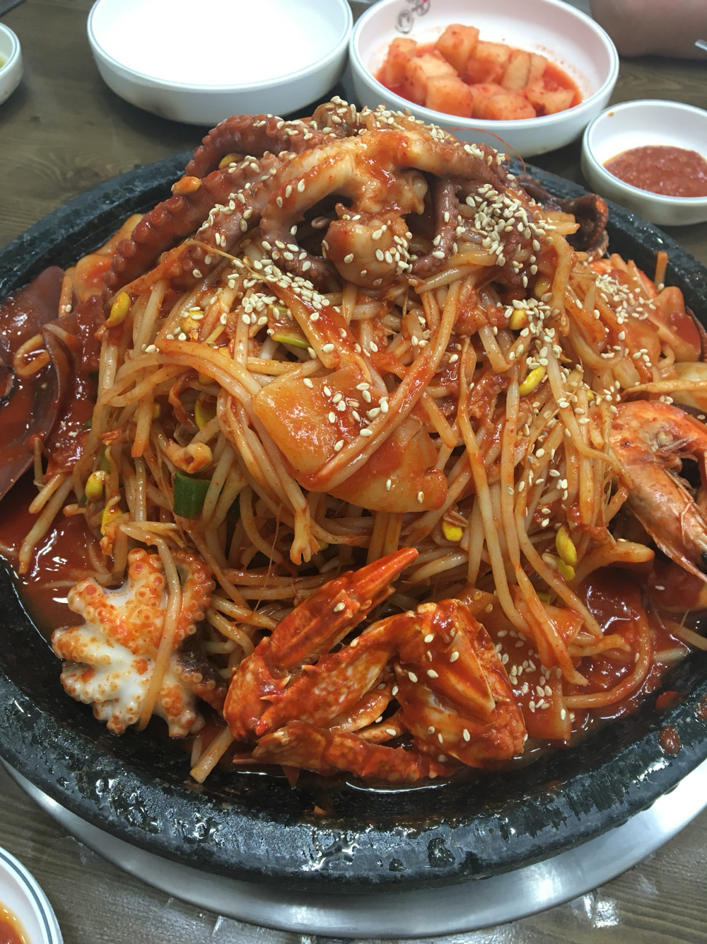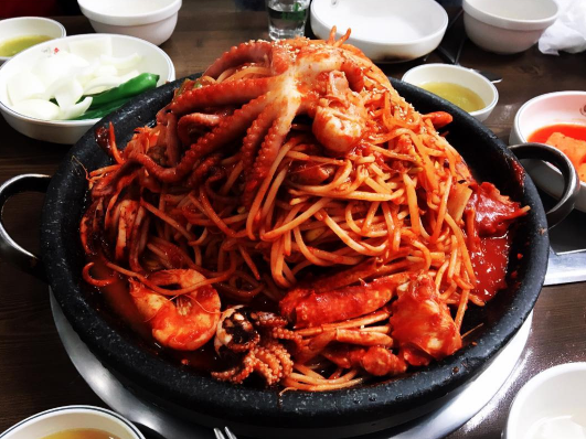 천안 맛집 베스트10 중 세번째로 추천드리는 맛집은 돌솥해물뼈찜 입니다. VJ특공대에 소개된 돌솥 해물뼈찜은 천안 신부동에 위치한 맛집입니다. 이곳에 주 메뉴는 해물뼈찜으로 아삭아삭한 콩나물과 낙지, 오징어, 꽃게, 새우, 미더덕 등 해물과 돼지등뼈가 이곳만의 특제소스에 버무려 나오는데 콩나물의 아삭한 맛과 해물, 등뼈가 어우러져 환상적인 맛을 냅니다. 이 외에도 낙지찜, 감자탕, 뼈해장국, 우거지 해장국 등이 준비되어 있습니다. 돌솥 해물 뼈찜의 대표 메뉴는 해물뼈찜 3만 4천 원, 낙지찜 1만 5천 원, 해물뼈찜 4만 원입니다.